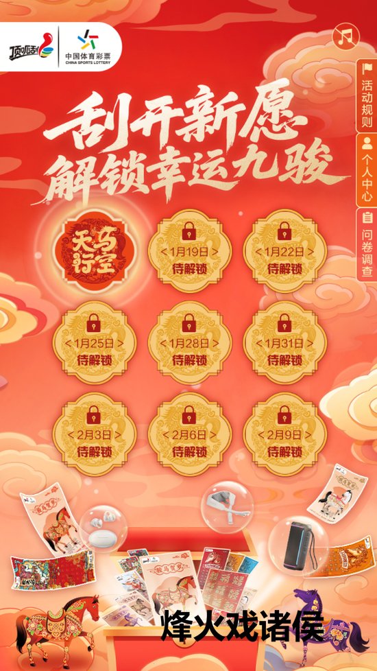 为了让新春的典礼感拉满 给全球增添乐趣与惊喜 2026年1月16日-2月11日 体彩至极推出 “刮开新愿 解锁运道九骏”H5活动 与你云表共度重生时光