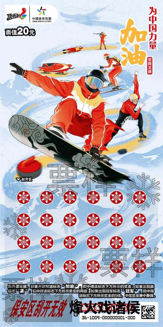面值20元的“为中国力量加油 雪舞龙腾” 则体现了冬日率承情谊 为提示健儿助力加油 鲜亮的红色又与新春祝愿相融 为冬日幸福狂欢喝彩!