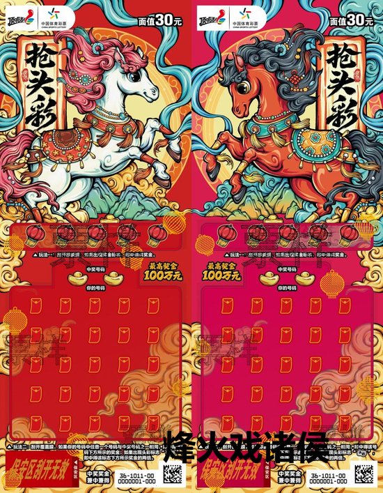 30元面值的“抢头彩2026” 用鲜嫩颜色态状两种花样的马驹 以激越的姿态祝愿您 新春开门红
